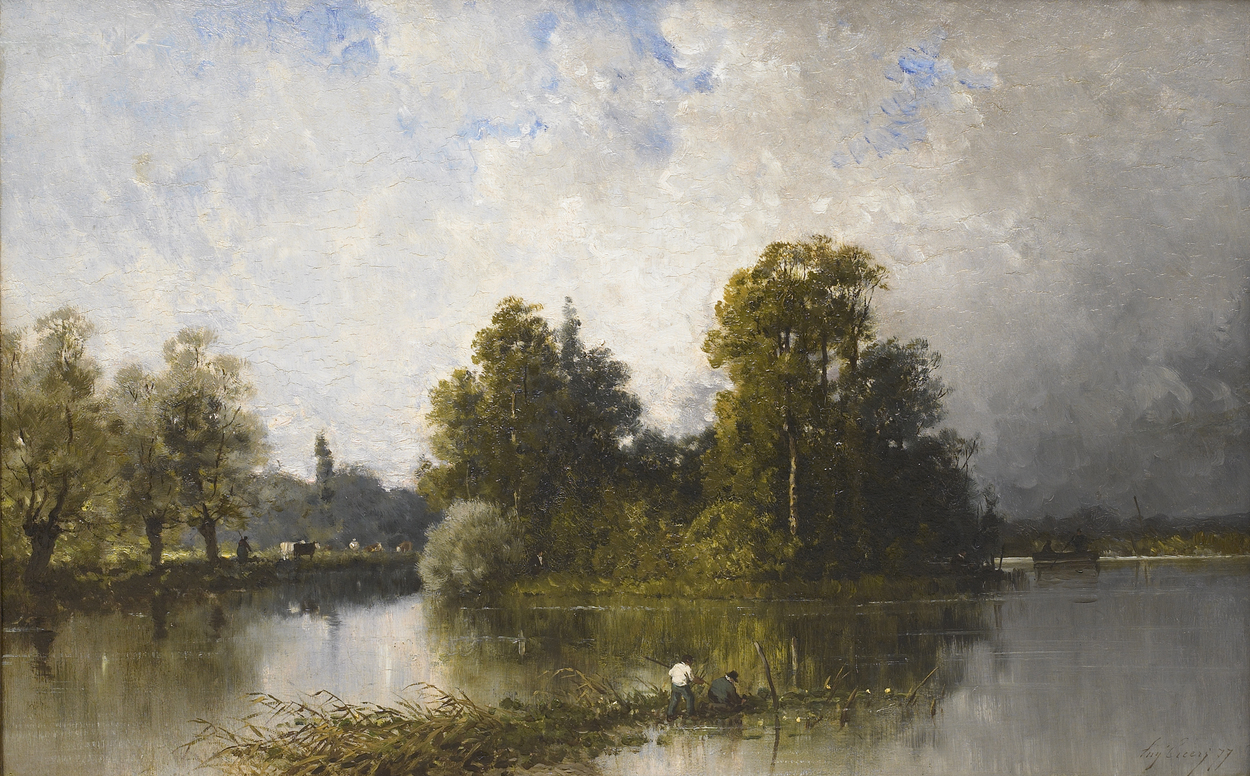 Son of the painter Pierre-Luc-Charles Cicéri, the chief decorator of the Paris Opera during the Restoration, and nephew of the Romantic landscape painter Eugène Isabey, Eugène learned to paint with his father. While his father’s influence is apparent in his decorative murals for the theater at Mans, Ciceri is best known for his sensitive landscape views. It is in these works that Ciceri adopted the warm color and intimate perspective of his uncle. He began his public career at the Paris Salon of 1851, otherwise known as the “Realist Salon” because of the rise in number and popularity of Realist and Barbizon paintings at the Salon, and won a third-class medal in 1852.