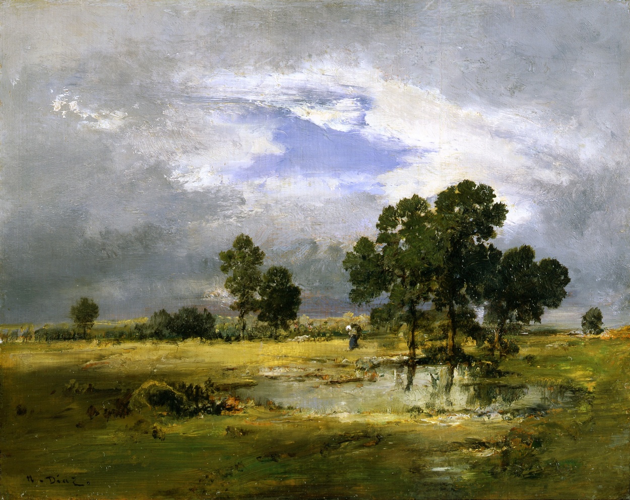Narcisse Virgile Diaz de la Pena was one of the foremost figures of the first generation of Barbizon artists. He, along with Rousseau, Millet, Daubigny, Corot, Dupré, Jacque and Troyon, established the Barbizon movement that drew hundreds of artists to the forest of Fontainebleau over the course of the nineteenth century. The heart of Barbizon art was direct study from nature, be it landscape or the human figure. Barbizon artists were the first to narrow the gap that had traditionally existed between the direct sketch and the finished studio picture.