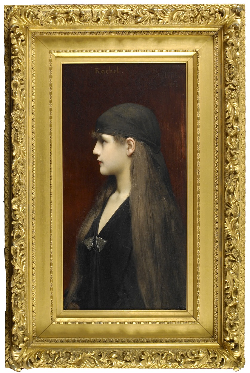 While elegant young women remained Lefebvre’s preferred subject throughout his long and distinguished career, his beautiful sitters remained sensitive to the dominant esthetic tastes of the day. In the late 1880s and 1890s, as the Symbolist and Classicist mode of artists such as Puvis de Chavannes or Gustave Moreau supplanted the Naturalist or exotic tendencies of earlier decades, Lefebvre’s work shifted accordingly. The present work presents a beautiful young woman as the biblical figure Rachel, the wife of Jacob who was renowned for her beauty.