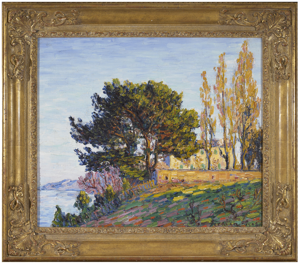 Over the next two years, Picabia continued to refine his Impressionist work, travelling to paint at Ouistreham, Passy-les-Tours, Nemours, Montigny, and the Martigues, as well as continuing to paint at Moret and Villneuve-sur-Yonne. He continued to send large, salon-style Impressionist paintings to the Salon of the Artistes-Français, as well as sending works to exhibitions in Nancy, Bayonne-Biarritz and to another solo show in Berlin in 1906. Galerie Haussmann held another one-man exhibition in 1907, again with a catalogue and text by Roger-Milès who described Picabia as a “virtuoso, seated at his keyboard, plucking scales.” Picabia’s admiration of Sisley is evident in the work of this time (and indeed the artist even helped to raise financial support for a monument to Sisley at Moret). Yet while comparisons to the work of Sisley continued, Picabia confirmed the personal character of his work when he commented that “craft in any fashion must not be the quest of the painter; he must reproduce the emotion which nature made him feel without the least care for technique.” (3) Following this second successful exhibition at Galerie Haussmann, Picabia participated in group exhibitions in Barcelona and Munich and had a solo show at the Cremetti Gallery in London that elicited another critical comparison to the original Impressionists.