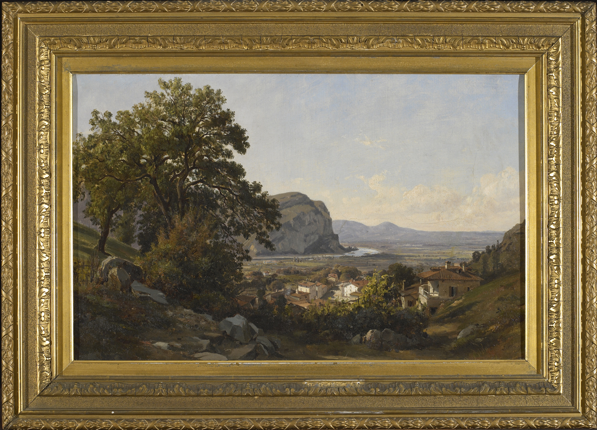 A slightly older contemporary of the Barbizon painters, Léon Fleury came from a family of painters. After completing his studies under Bertin and Hersent at the Ecole des Beaux-Arts, he did a sketching tour of France and the neighboring countries, completing views of France and from Brussels in the north to Naples in the south. He also painted numerous views of the Alps and Switzerland. He was a regular exhibitor at the annual Salon between 1831 and 1855.